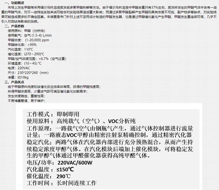 甲醛/甲苯發生器
